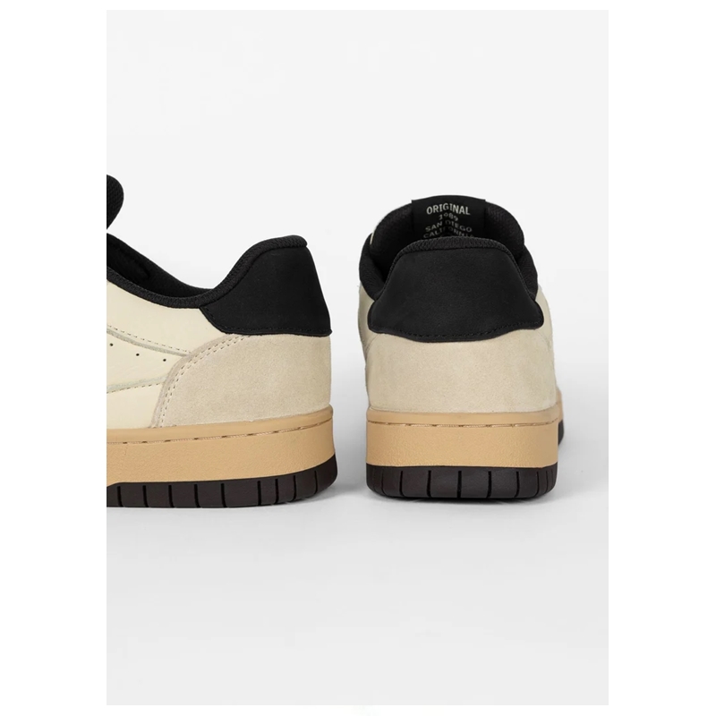 Stylowe sneakersy w odcieniach beżu i czerni to idealny wybór dla osób ceniących wygodę i miejski charakter obuwia. Cholewka wykonana została z połączenia skóry naturalnej oraz elementów zamszowych, co gwarantuje trwałość i ponadczasowy wygląd. Kontrastowe, czarne logo PITBULL na boku nadaje butom wyrazistego charakteru, a masywna podeszwa w karmelowym kolorze zapewnia stabilność i komfort noszenia na co dzień.